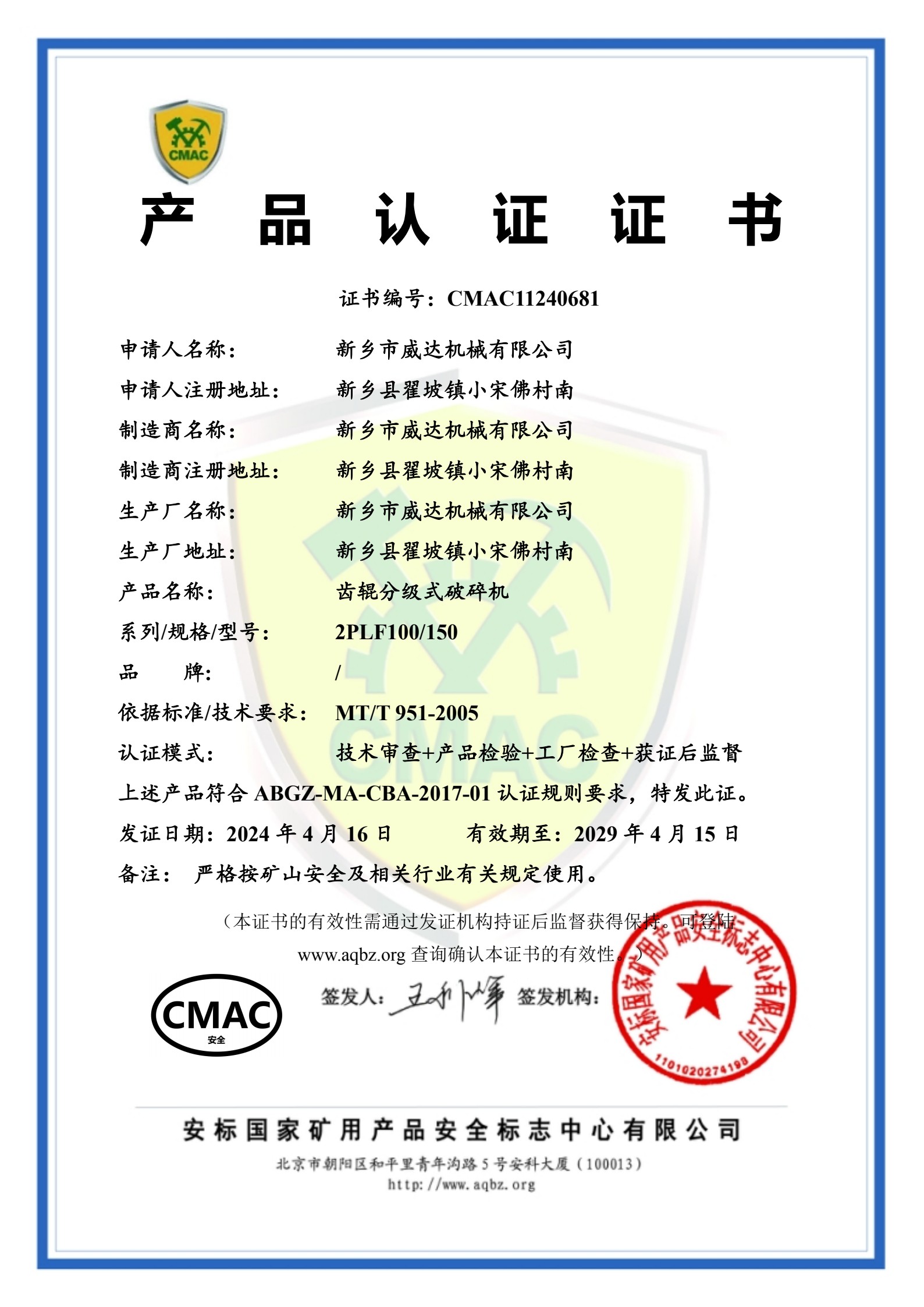 質量管理體系認證證書